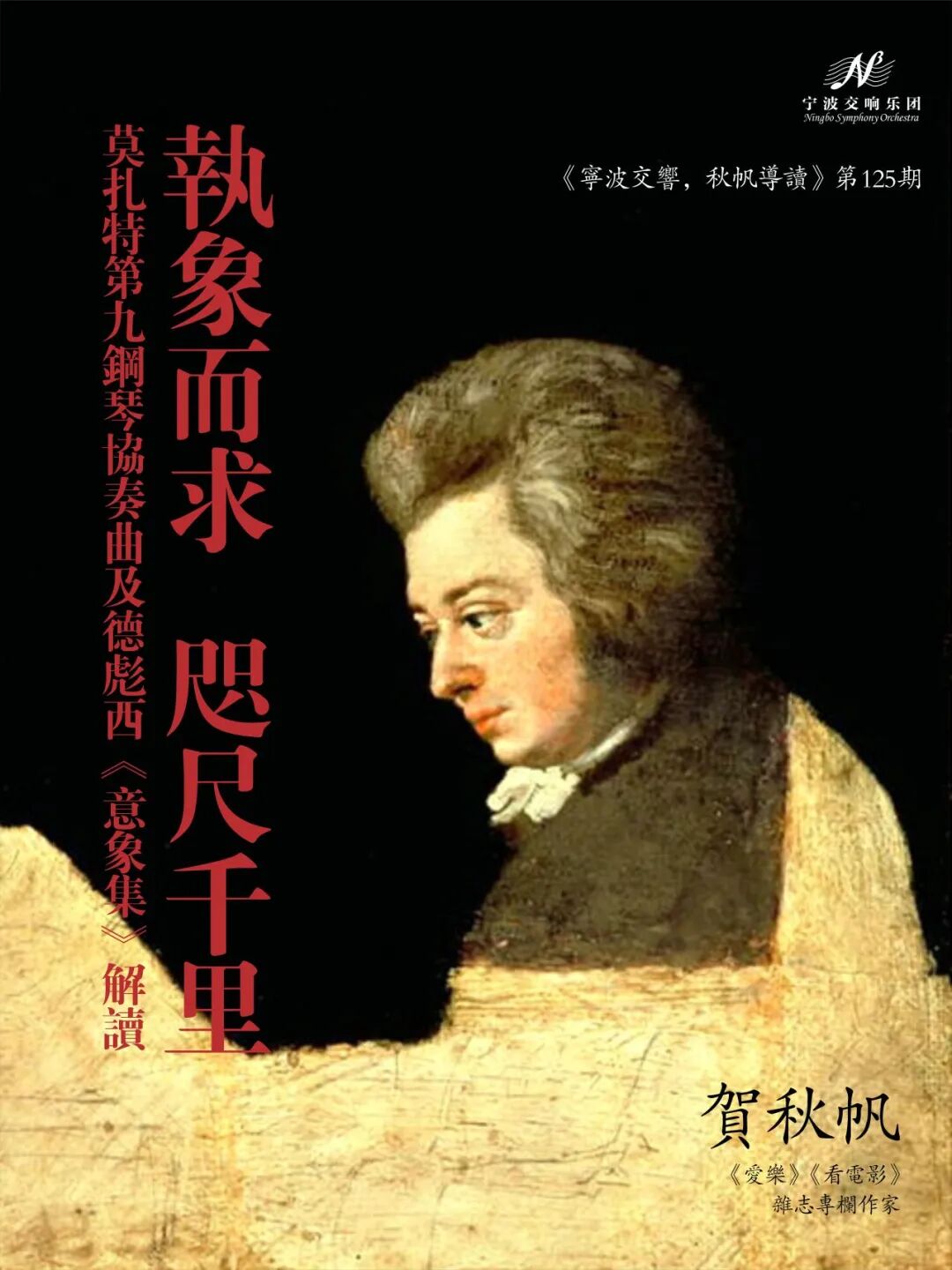 1.许忠和宁交的合作史对宁交的意义解读,法系之会和天作之合——德彪西以及莫扎特的“法系”作品——从第九钢琴协奏曲的题献对象说起。 2.萨尔茨堡宫廷乐师时代的划时代之作,从第九钢琴协奏曲看莫扎特早期作品里的早熟气象与悲欣交集的气质,以及其对未来作品系列的预告。 3.从《意象集》看德彪西印象派的拓展及法国人心目中的伊比利亚,兼谈《伊比利亚》和拉威尔《西班牙狂想曲》之关联,兼谈《意象集》的演出顺序及效果。